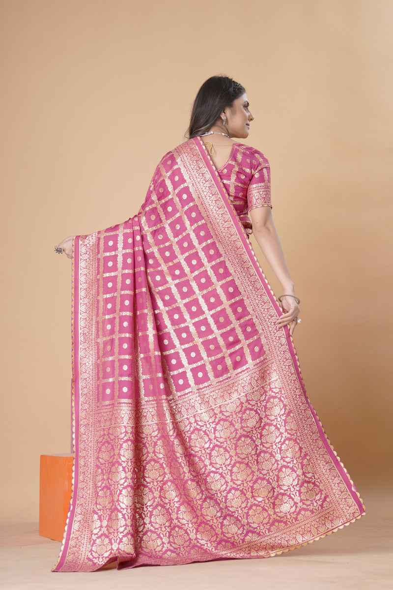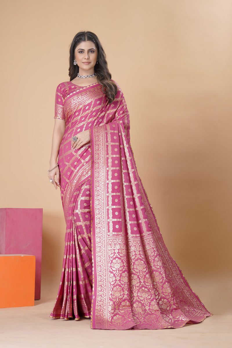 Coral Pink woven saree with blouse piece